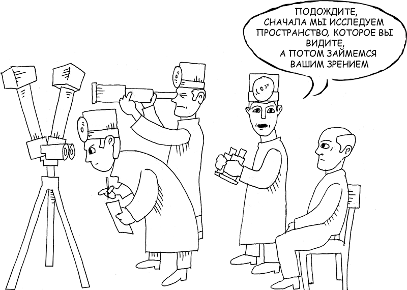 Вторая проблема заключается в том, что мало кто осмеливается подвергать сомнению общепринятые определения, сформулированные авторитетами офтальмологии. В большинстве случаев на некорректность формулировок просто не обращают внимание, считая, что все априори должны понимать, о чем идет речь. А иногда имеет место эффект «голого короля», когда никто не рискует оспаривать даже очевидные глупости, изрекаемые небожителями. Следствием же является то, что формулировки, данные прародителями науки о зрении, цитируются не всегда к месту и, к сожалению, без должного осмысления и понимания. Порой попирается даже элементарная логика.