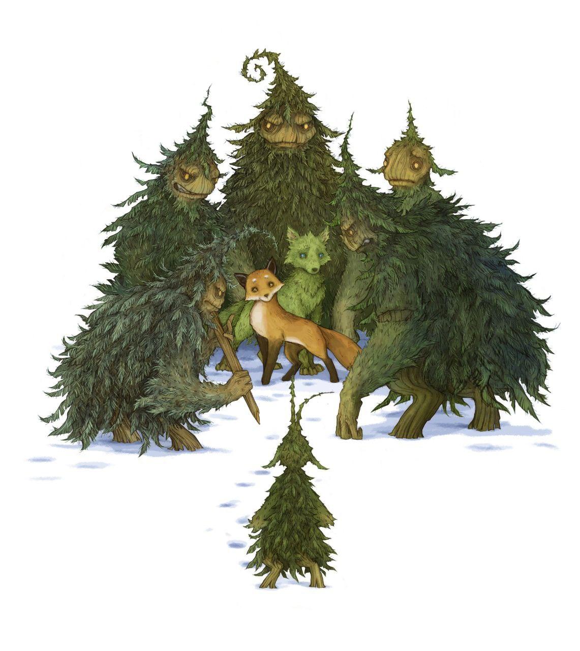 Вжух! Что-то метнулось между низкими кривыми со́сенками. Друзья как по команде прижались к заледенелой земле. Скок! На поляну выпрыгнула кособокая ёлочка с редкими ветвями и раздвоенной голой верхушкой. В стае еловых волков такую нескладную вряд ли сыщешь.