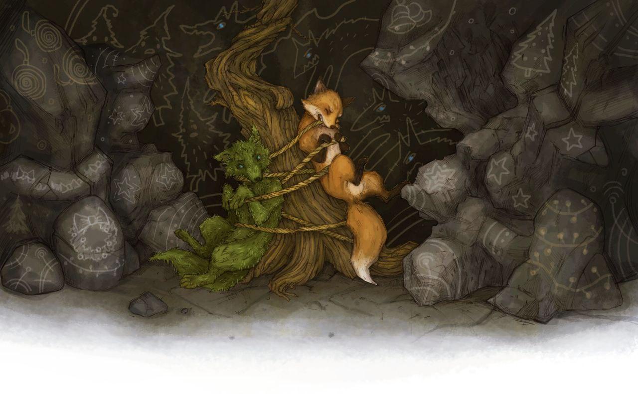 Вот уже полчаса Рычун тщетно пытался высвободиться. Но верёвки крепко прижимали его к стволу кривой лиственницы, росшей в пятне слабого света, проникающего через дыру в своде пещеры высоко над головой. Каменный пол на расстоянии двух прыжков от лиственницы растворялся в темноте. За спиной послышалась возня. Рыжая Цунами, привязанная к тому же дереву, извивалась, стараясь перекусить путы, отчего верёвка натягивалась ещё сильнее.