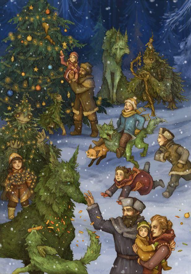 Весть о празднике разнеслась на всю округу. Не прошло и часа, как на поляне люди, звери и пихтовики наряжали ёлки, накрывали столы, жгли костры, смеялись, рассказывая истории и перебивая друг друга.