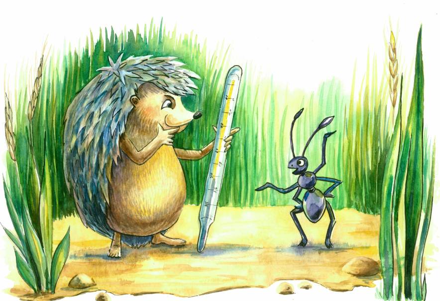 – Хм, интересная штуковина, – улыбнулся Ёжик, и протянул градусник Муравью. – Какую полезную палочку ты нашёл.