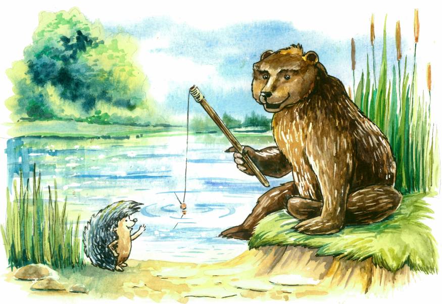 Жил-был Медведь, и он очень любил рыбу ловить. Сидел он однажды на берегу пруда, ловил как обычно рыбу, а мимо Ёжик проходил.