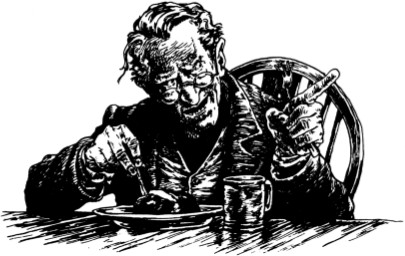 Dermod gazed on the tiny speaker with wonder, who continued, “Make yourself noways uneasy about the priest’s supper; for if you will go back and ask him one question from us, there will be as fine a supper as ever was put on a table spread out before him in less than no time.”