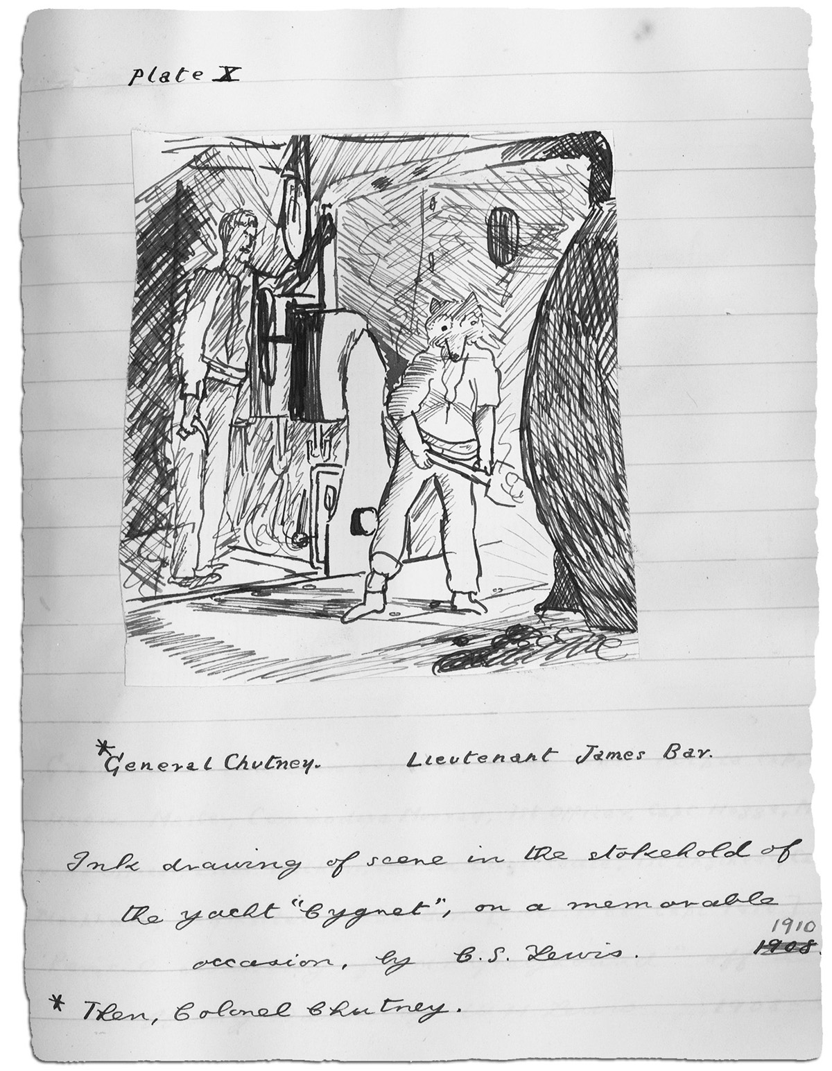 In developing the world of Boxen, Jack appropriated the ‘dressed animals’ of Beatrix Potter and that part of their fictional world they called ‘Animal-Land’, while Warnie (whose interests were always a touch more prosaic than Jack’s) made his half ‘India’. As their writing and imagination flourished, these elements were combined into the land of Boxen, a land filled with history, politics, war and adventure. It is truly remarkable when you consider that Jack was only 8 when he wrote so astutely of power and the rise and fall of nations in his sketch ‘History of Mouse-Land’ (to be found in History of Mouse-Land from Stone-Age to Bublish I (Old History)), and only 9 or 10 when he wrote his enlightened essay on Boxonian society, touching on such topics as oppression and emancipation in ‘The Chess Monograph’ (The Chess Monograph). Equally remarkable is the artistic and imaginative ability of his brother; Warnie could have been no more than about 11 when he drew the fabulously detailed cutaway schematic of H.M.S. Greyhound that appears in “The Sailor”