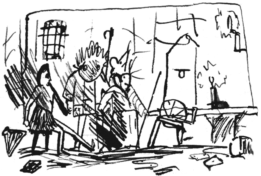 SIR BIG: (suddenly finding it is BUNNY’S ring) How is this? This is King Bunny’s ring made up to look like a comon one, at last I have found the theif ho!! Mr Blue, Sir Peter Mouse, Gollywog, I’ve got the King’s ring.