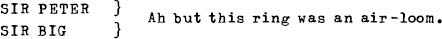SIR GOOSE: (inturupting) Hush o hush, good Sir Big. I can give thee the true history of the king’s ring.