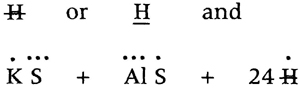 In a further ‘simplification’, which in practice wrought havoc in the classification of organic compounds and in communication between chemists, Berzelius in 1827 introduced ‘barred’ or underlined symbols to indicate two atoms of an element. (Since the bar was one-third up the stem of the symbol it involved printers making a special type, thereby losing one advantage over Dalton’s symbols; hence the use of underlined symbols in some texts.) The symbols for water and potash alum thus became, respectively: