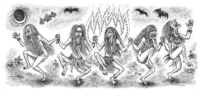 Оргии продолжались до появления зари и пения петухов. Тогда все исчезало и все разлетались в разные стороны. На пути ведьмы разбрасывали свои мази и яды на поля, скот и людей и сеяли повсюду порчу и пагубу. Чтобы вернуться незамеченной домой, ведьма часто принимала образ какого-либо домашнего животного – собаки или кошки.