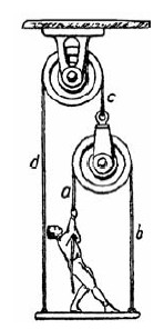 Человек весом 60 кг стоит на платформе, вес которой 30 кг. Платформа подвешена на веревках, перекинутых через блоки, как показано на рис. 11. С какою силою должен человек тянуть за конец веревки а, чтобы удержать платформу от падения?