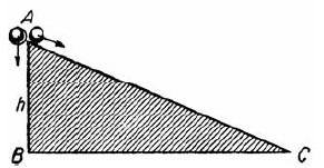 1. Из точки А (рис. 18), находящейся на высоте h над горизонтальной плоскостью, движутся два шара: один скатывается по наклону А С, другой падает свободно по отвесной линии АВ.