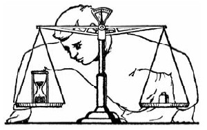 Песочные часы с 5-минутным заводом поставлены в бездействующем состоянии на чашку чувствительных весов и уравновешены гирями (рис. 20).