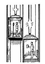 Рис. 24. Физические опыты в сорвавшемся подъемнике