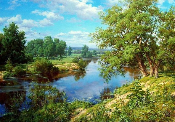 Вновь ива плачет над рекою,Не плачь, родная, я с тобою.Я с удочкой – поймаю рыбку,Уже не сделаю ошибку.Не буду мучить я живую,А отпущу красу святую.В глаза взгляну и улыбнусь,Прощай родная, не стыжусь.Эх, где же вы желанья, где?Где истина, и где вы все?Забыты, канули давно,Всё вспомню – это суждено.Наверно детство, маму тоже,Друзей ушедших, кто дороже.И дом, где зародилось детство,Где хулиганило блаженство.Где сенокос, и я, и деда,Мы вместе – продолженье дела.Он воин, три войны, но в прошлом,А я – кузнечик пред колоссом.Тут двое нас, – коса и поле,Знать четверо уже на воле.Вдруг осветилось всё вокруг,Заря встаёт, и виден луг.Смотри—ка, показалось солнце,Такое, как пирог на донце!Блестит взывая свет росы,Ложится травка от косы.Эх, счастье! – Дышится простором,Тут радость грустная укором.Ушло, что так хранил любя,Остались слёзы глухаря.