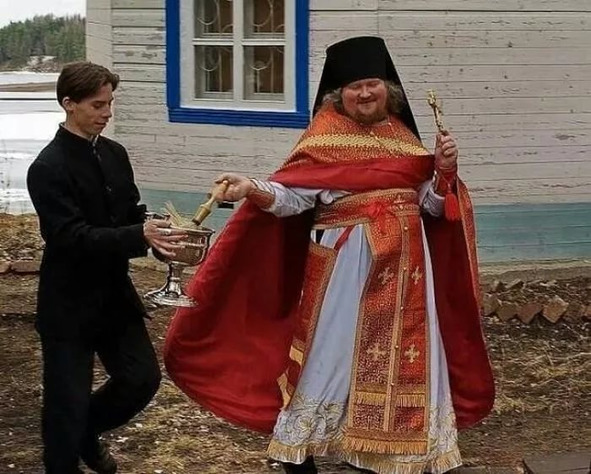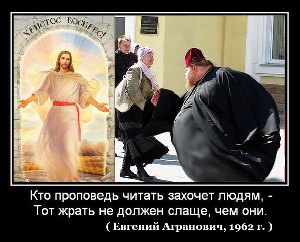 Поп под рясой пузо прячет,Любит сало – сам такой!