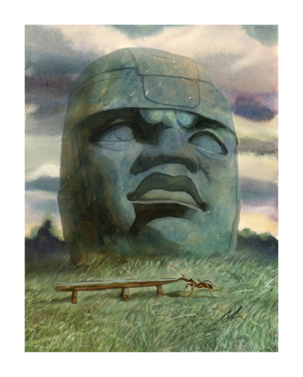 Старший по каменоломне – Главный Заготовщик – сосредоточенно смотрел вниз. Стоя наверху, на опасном уступе скалы, он видел все или почти все, что творилось внизу. Там каменотесы вырубали каменные глыбы черного базальта иногда весом до 40 тонн. Главный Заготовщик отвечал за их доставку старому мастеру – главному скульптору его народа. Только он, старый мастер, знал, что и из какого камня можно резать при помощи каменного резца. Лишь он, старый мастер, в совершенстве владел искусством резьбы по камню и умел создавать неповторимые произведения искусства – шедевры ольмекской скульптуры…