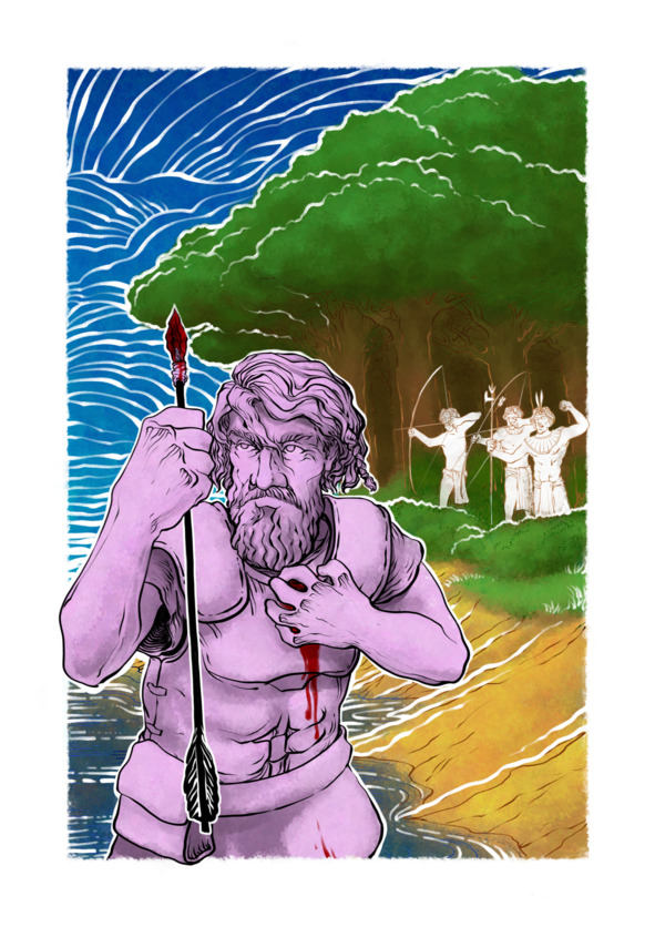 Вот уже несколько дней, как бородачи высадились на побережье далекой земли, недавно открытой братом их предводителя. Уже несколько дней двигаются они вглубь этой земли, но ни один человек пока не встретился им на пути. Тревожно! Звенящая лесная тишина могла быть обманчивой.