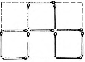 И наконец, в той же фигуре (рис. 2) так уберите 8 спичек, не трогая остальных, чтобы осталось всего лишь 2 квадрата.