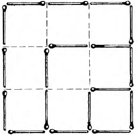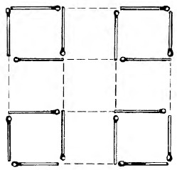 Из той же фигуры (рис. 2) так извлеките 8 спичек, не трогая других, чтобы оставшиеся спички составили 4 одинаковых квадрата.