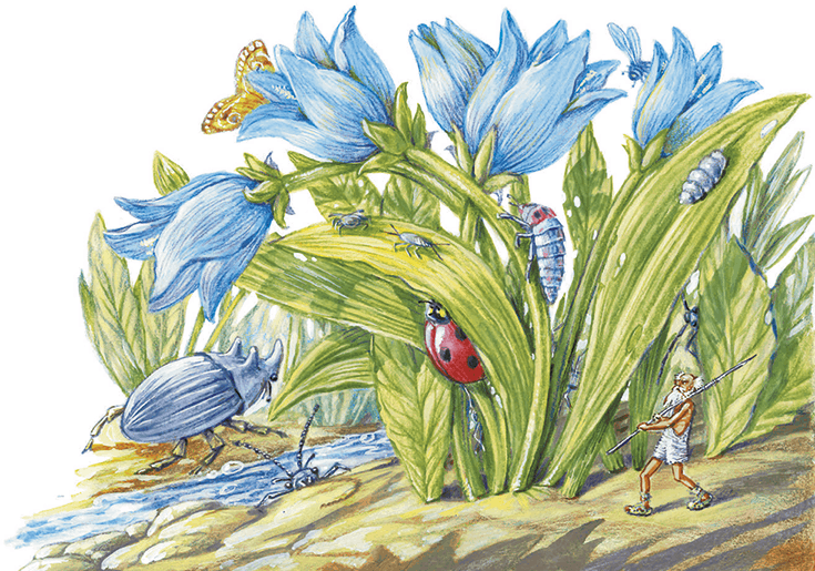 Карик открыл глаза и вдруг вспомнил все. Вспомнил, как они с Валей летели на стрекозе. Вспомнил страшный хобот водомерки, сильные лохматые лапы паука.