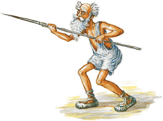 Профессор быстро оглянулся. Сзади, за его спиной, кто-то шевелился, осторожно подкрадываясь к нему. Иван Гермогенович пошарил вокруг себя руками. Пальцы его нащупали копье. Он крепко сжал его и, вскочив на ноги, прижался к стене.