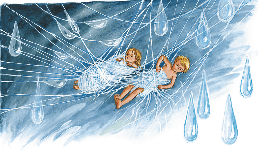От сильных толчков и раскачивания паутинные веревки ослабели. Помогая друг другу освободиться от веревок, ребята, хотя и с большим трудом, все-таки выбрались из веревочной люльки.