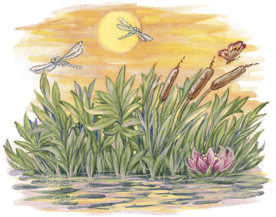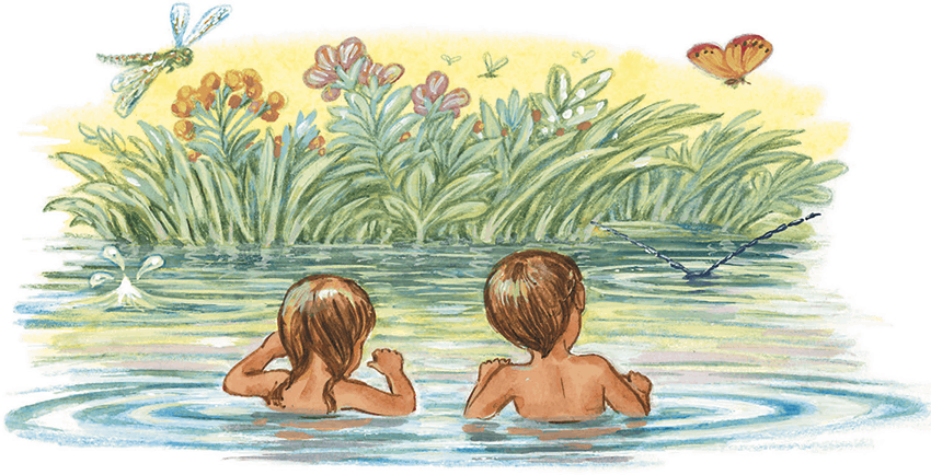 Валя, вздрогнув, чуть не свалилась с почки водокраса.