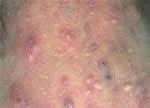 3. Количество узлов более 4, присутствуют рубцы, стойкие пигментные нарушения, келоиды.