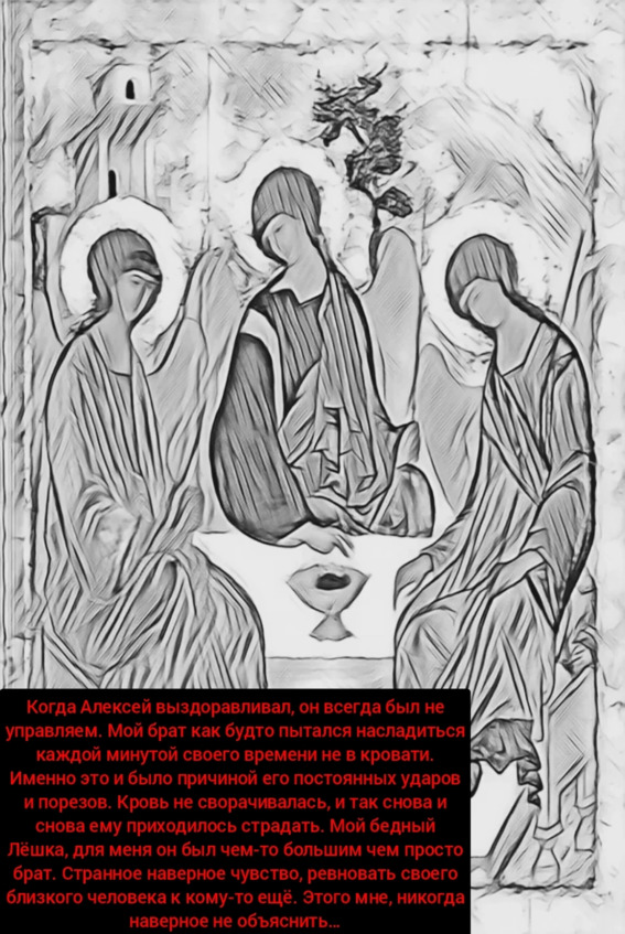 01.02.14: Есть ли что-то страшнее смерти? Не знаю, но в последнее время я думаю только об этом. Вчера в обед приходил батюшка и очень долго молился перед моей кроватью. Что-то шептал о Дьяволе. Вполне возможно, что просто причудилось. Но на вопрос о том, почему Бог любит делать своим земным творениям больно, он так и не ответил.