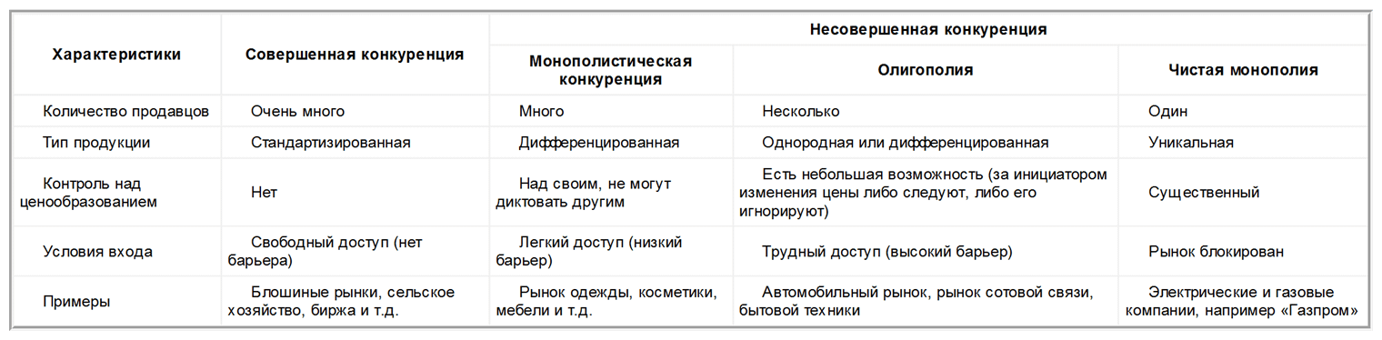 Два типа рынка – это рынок совершенной конкуренции и рынок несовершенной конкуренции.