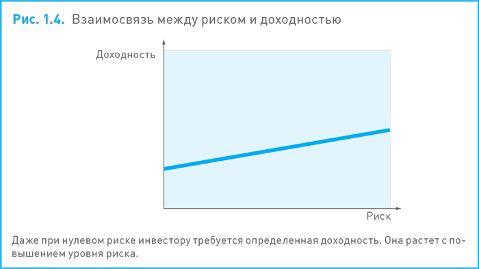 Как и во всех остальных сферах нашей жизни, в финансах риск и доходность взаимосвязаны друг с другом. Факты говорят о том, что эта взаимосвязь выглядит примерно так, как показано на рис. 1.4.
