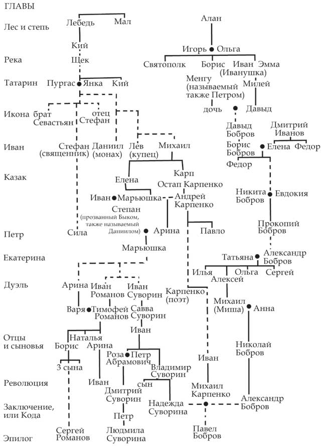 Роман «Русское»«Русское» – исторический роман. Семейства Бобровых, Сувориных, Романовых, Ивановых, Карпенко, Поповых и персонаж по фамилии Пинегин вымышлены. Однако, прослеживая их судьбы на протяжении столетий, я помещал их в историческое окружение, среди лиц, которые существовали или, по крайней мере, могли существовать, и событий, которые происходили или, по крайней мере, могли происходить на самом деле.