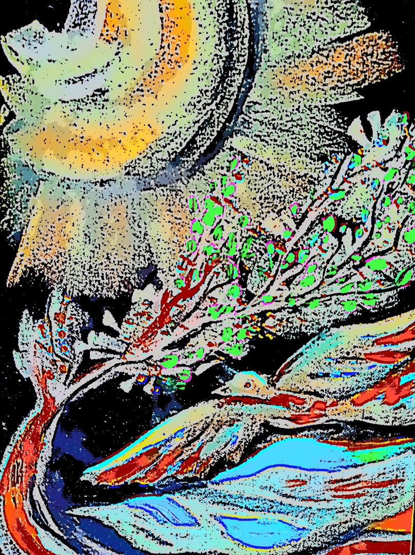 Хозяюшка леса поцеловала в клювик золотую птицу, потом серебряную. Сама руками взмахнула, как крыльями, обернулась птицей, да красивой как жар яркой и полетела Жар Птицей. А за ней ветер, остудил её и стала она белой. Тут и золотая и серебряная птицы полетели за ней следом