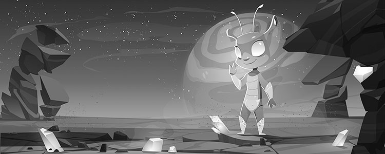Пришелец издал тихий звук и положил флаг на землю. Дэниел засомневался, стоит ли его подбирать. Инопланетянин казался безобидным, но маленький космонавт никогда раньше таких не встречал. Что, если он принадлежал к виду, умеющему управлять разумом? А вдруг он укусит Дэниела, когда тот нагнётся за флагом?