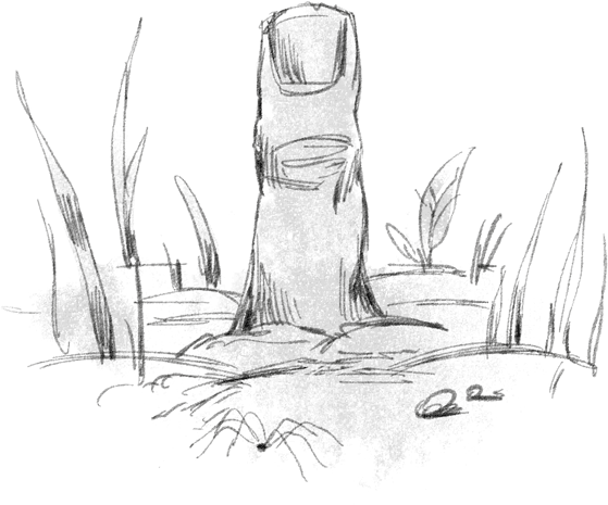 Один мальчик копался в саду и увидел в земле огромный палец. Он его тянул-тянул, но вытащить не мог. Тогда он хорошенько дернул, и палец оторвался. Раздался стон, и мальчик убежал.