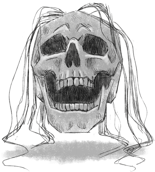 Дух метнулся к нему через всю комнату и схватил за рясу. Духу – девушке – на вид было не больше двадцати лет. Ее волосы были спутанными, кое-где недоставало клоков. Плоть на лице местами сгнила, обнажая кость и зубы. Глаз не было, но глазницы светились голубым пламенем. Носа тоже не было.