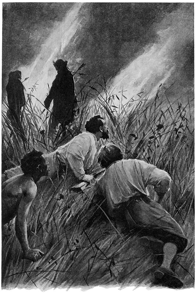Не сводя глаз с окрестных кустов и время от времени подкидывая в огонь пригоршни перца, они провели так часа два, как вдруг африканец, обладавший острейшим слухом, услышал, как кто-то тихонько раздвигает ветки.