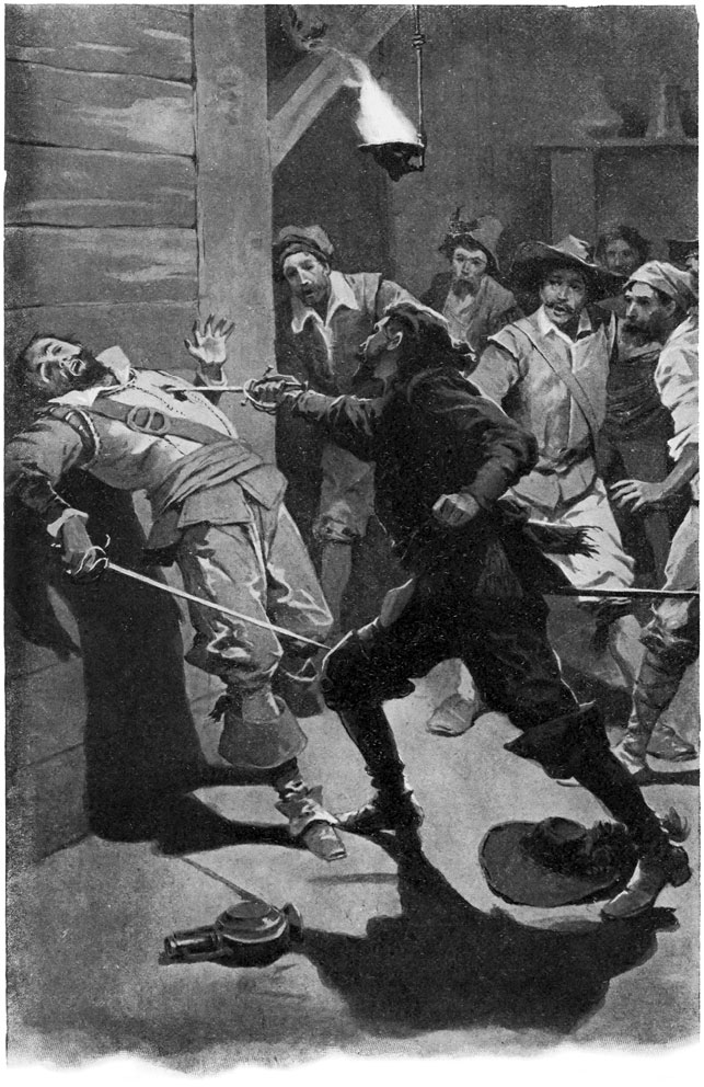 Склонившись над трупом, он вырвал у него из рук шпагу и, протянув ее капитану, мрачно смотревшему на искателя приключений, сказал ему: