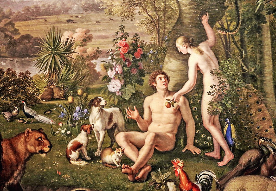 И сказал Бог: сотворим человека по образу Нашему (и) по подобию Нашему, и да владычествуют они над рыбами морскими, и над птицами небесными, (и над зверями,) и над скотом, и над всею землею, и над всеми гадами, пресмыкающимися по земле. И сотворил Бог человека по образу Своему, по образу Божию сотворил его; мужчину и женщину сотворил их. И благословил их Бог, и сказал им Бог: плодитесь и размножайтесь, и наполняйте землю, и обладайте ею, и владычествуйте над рыбами морскими (и над зверями,) и над птицами небесными, (и над всяким скотом, и над всею землею,) и над всяким животным, пресмыкающимся по земле. И сказал Бог: вот, Я дал вам всякую траву, сеющую семя, какая есть на всей земле, и всякое дерево, у которого плод древесный, сеющий семя; – вам сие будет в пищу; а всем зверям земным, и всем птицам небесным, и всякому (гаду,) пресмыкающемуся по земле, в котором душа живая, дал Я всю зелень травную в пищу. И стало так. И увидел Бог все, что Он создал, и вот, хорошо весьма. И был вечер, и было утро: день шестой.[1]