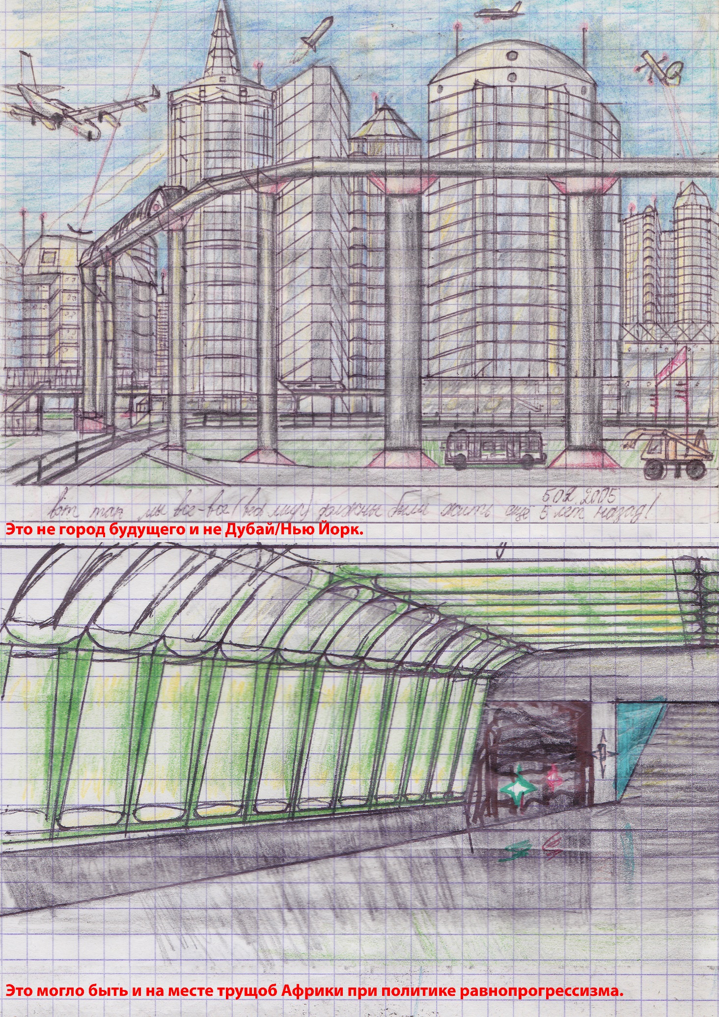 Весна 2004, 9-й класс школы (8-й год учёбы). От «не о чем больше думать», и узнав где-то притчу «про деньги и инопланетян», начинаются бессмысленные рассуждения: «А можно ли было бы на Земле организовать равномерное техногенное развитие? По всем странам? На всей планете? Поровну распределять все ресурсы? Никакой коммерции и капитала – всё только государственное? Вокруг помимо магазинов, аквапарков и аттракционных развлечений одно производство: заводы, фабрики, сельское хозяйство, институты, научно-исследовательские лаборатории? Всё, что кто-нибудь изобретёт или разработает – тут же узнаётся во всех уголках мира и моментально распространяется всеми его производящими точками в количестве населения Земли? Никакой войны и политики, никакого деления, воровства и преступности – у всех есть всё необходимое, но всё большее – строго по мере индивидуальных заслуг? Все за справедливость: как работал – так и заработал, заработал – получил, а не стал жертвой неполучения заслуженного? Самый конченный нищеброд в мире – это тот кто «простой рабочий»: работающий на работе, не требующей образования и умственной нагрузки, и тот кто за такую работу, имея на этот достаток всю нужную и неотсталую, но бюджетную и скромную домашнюю и компьютерную технику, пару поездок в год в отпуск, но ничего больше (детей и машину уже не имеет – денег нет, да и не по зубам ему такому это всё в моральном плане), проживает (на примере «нашей» – фактической жизни в день завершения данного писания) в «квартире-новостройке» (панельной/кирпичной бюджетной, но современной – возрастом, а оттого изношенностью не более 20 лет, так как старее дома все уже снесены) площадью от 30 до 40 квадратных метров с инфраструктурой из магазинов, парков, часто ходящего транспорта и метро рядом один (у другого члена его семьи ещё одна такая же отдельная квартира, ещё с рождения им всем уготовленные государством), а не тот кто цыган/бомж/житель грязной Африканской трущобы/деревенский прокуренный спившийся, проживающий в ветхом доме/тот же рабочий, но за копейки работающий из-за отсутствия заказов и работы, ждущий от этого государства что-то лучшее? Самый же богатый и состоятельный – это не сын богатого папы, не наркоторговец, не мошенник, и не крупный преступник «в законе», а лишь хорошо (в отличии от того рабочего) владеющий точными науками, и силами этих знаний сделавший ох как нужное будучи техническое/биологическое изобретение, в награду за что и получивший/получающий такие богатства в отличии от коллеги более низшего класса и способностей соответственно? Большиìе же по площади или двухэтажные квартиры до 200 квадратных метров есть только у инженеров, оправдывающих полученное высшее образование, и постоянно проявляющих инициативу во всём необходимом для развития и совершенства производимого; работников руководящих, сложных и ответственных должностей…?»