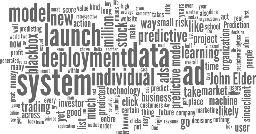 Сколько смелости нужно для того, чтобы внедрить прогнозную аналитику в реальную практическую деятельность? И какое вознаграждение это сулит? Что происходит, когда человек ставит все сбережения на разработанную им лично предикативную модель для торговли на фондовом рынке? Внедрить прогнозную аналитику – значит не только составлять прогнозы, но и действовать на их основе, применяя на практике извлеченные из данных знания. Это решительный шаг – но вы не сможете выиграть, если не будете играть.
