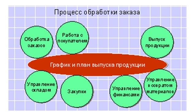 Маркетинг – создание новых изделий – снабжение – производство – сбыт – доставка продукции потребителю – сервисное обслуживание (см. рис. 1.1.1), и используют промышленные стандарты MRP/ERP в качестве базовой бизнес – модели, нацеленной на достижение экономической эффективности.