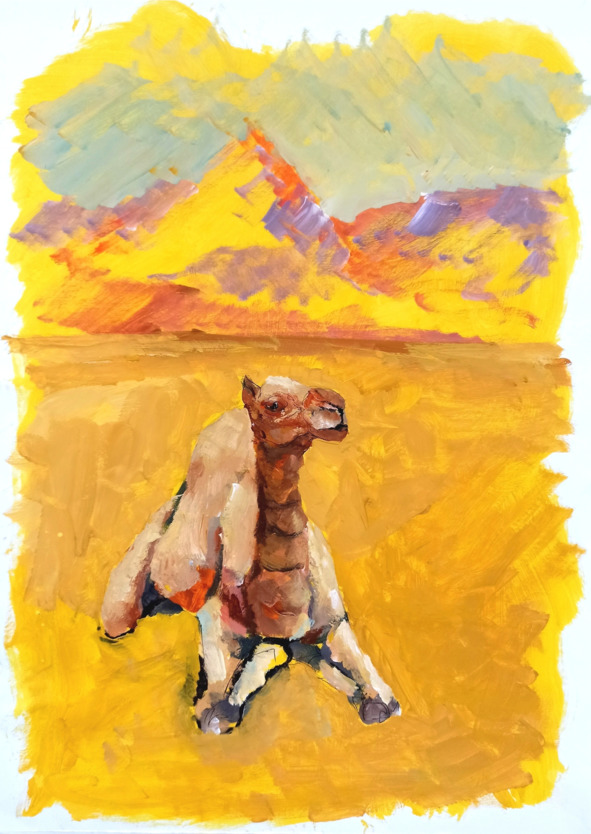 Вьюк накинули на спину —Караван готов к пути.Может им не повезти.Встретится ли им вода?Будет часто ли еда?Стопы обожжёт песок?А верблюд идёт вперёд.На коленях, пальцах, стопахПо мозолям у него,Чтоб горячие пескиБоль ему не принесли.Горб верблюда выручает,Жир, что носит в нём, спасает.Можно долго без едыС ним по Африке идти.Месяц бродит без воды,А найдет её легко.Выпивает литров сто.На хранение в желудокОтправляется вода.И верблюдом экономноПотребляется она.Их фекалии сухи, лишены почти воды.Ими можно жечь костёр,Добавляя вместо дров.Потовых желёз немного.Только выше сорокаС кожи испаряется вода.Ноздри прижимает,Ресницы опускает,Вот так себя от бурьВ песках верблюд спасает.Если сильно устаёт —Ляжет, больше не идёт.Сколько их ни тормоши,За узду ни тяни,Пока верблюд не отдохнёт,Он не тронется в поход.Может плюнуть он легко!Чтоб обидчики егоВмиг отстали от него.Человек верблюда ценит!Мясо, шерсть и молокоПолучает от него.Одомашнен человекомОдногорбый дромадер.Вряд ли дикого верблюдаВы отыщете сейчас.Если только одичал,От хозяина сбежал.