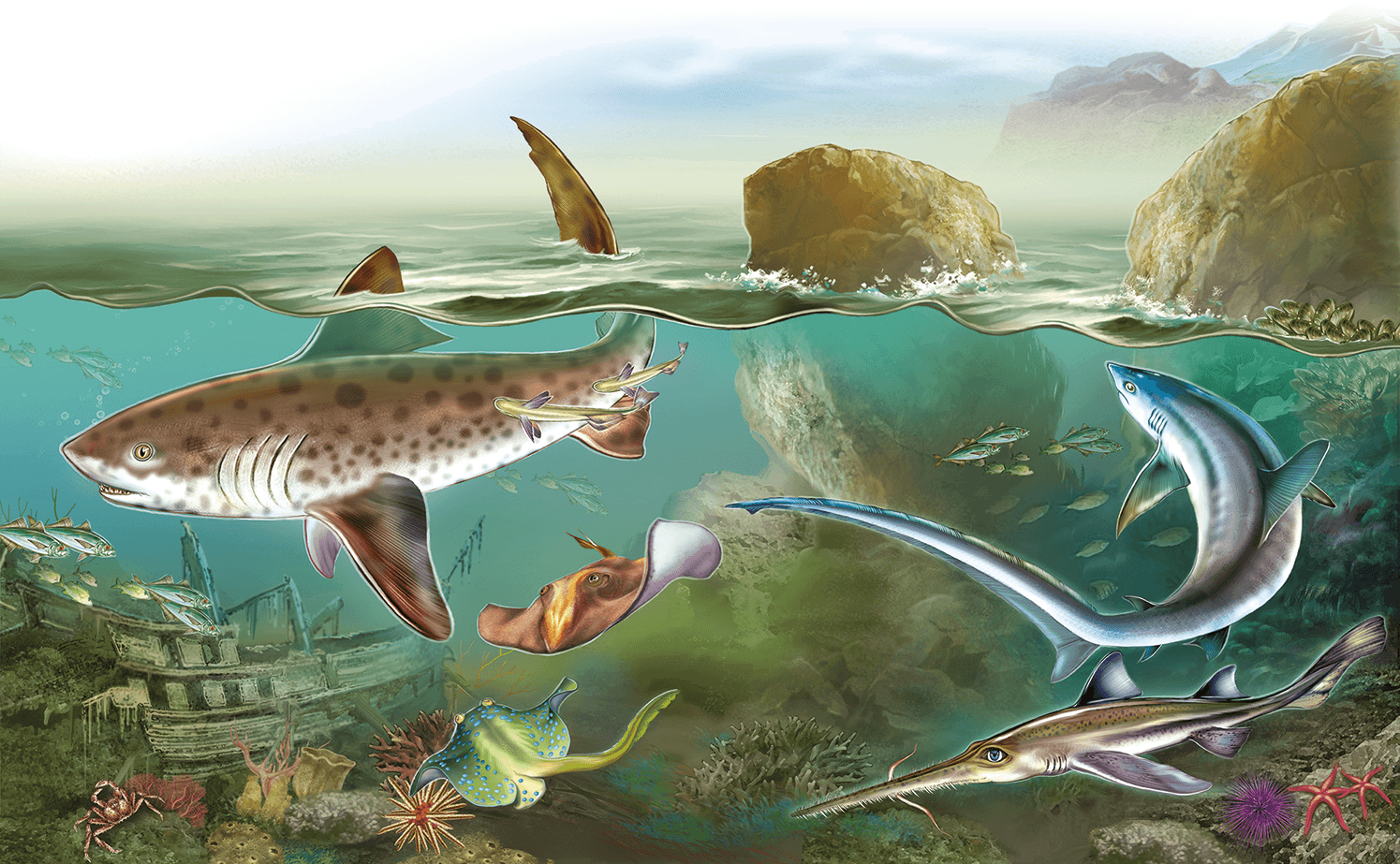 Разные акулы и скаты