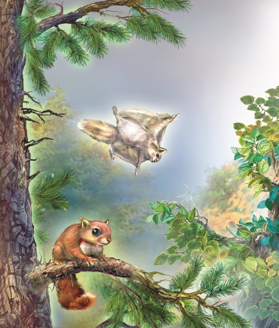 Самая простая разновидность активного полета – планирование. Отличным его примером служит полет летяги. Это небольшой зверек с пушистым хвостом, близкий родственник белки. На боках у летяги – между передними и задними лапами – тянутся особые складки кожи, покрытые мехом. Оттолкнувшись от ветки дерева, летяга расправляет эти складки. Они позволяют ей значительно удлинить прыжок, превращая его в небольшой полет. Его рекордная дальность у нашей обыкновенной летяги – 50 м. Зверек легко может перелететь через небольшую лесную прогалину и «оторваться» таким образом от хищного преследователя – соболя или куницы. Планируя, летяга всегда немного теряет высоту и не может изменить направление полета. Это основные недостатки самого простого способа полетать.