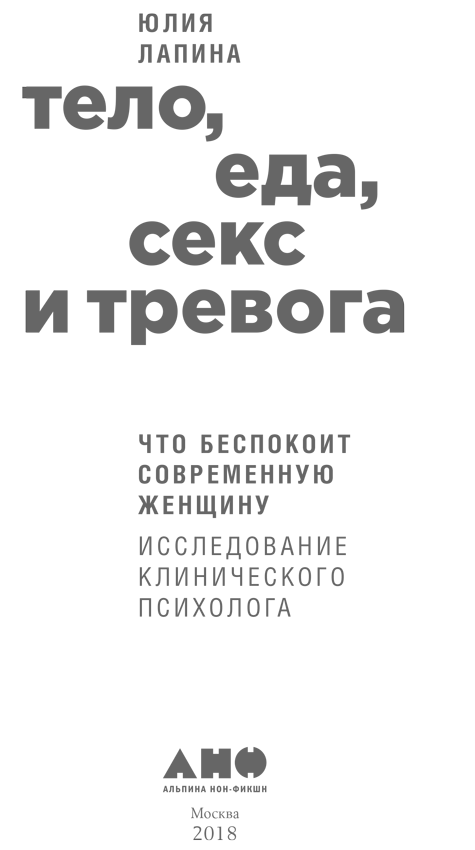 Наблюдая за переживаниями своих клиентов и дискуссиями в социальных сетях, читая бесконечные статьи о похудении, я делаю вывод: сегодня тело, диеты и сексуальность – не просто темы горячих споров, а новая религия со всеми вытекающими последствиями: жесткой структурой, запретами, влиянием на частную и общественную жизнь. В этой религии есть свои святые, которые обещают спасение, а грешников ждет наказание. Я назвала книгу, которую вы держите в руках, «Тело, еда, секс и тревога», потому что именно на эти темы люди уже не первый год спорят на моей странице в Facebook. Я хочу показать разные грани сегодняшних женских тревог сквозь призму еды, тела и сексуальности. В то время как на Западе изданы тысячи «антидиетических» книг (да-да, диеты, разумеется, не работают) и книг, посвященных принятию своего тела и переосмыслению женской сексуальности, в России ощущается нехватка подобной литературы. Ведь нельзя просто переводить книги зарубежных авторов, их необходимо адаптировать к нашим реалиям: в нашей стране свое, сложное отношение к этим темам.