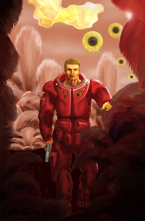 Поддельный экзоскелет давил на спину, но двигатель не работал, а может, там его и не было. Проверять я уже не пытался – при любой попытке расстегнуться, казалось, весь лес начинал мне мешать. Зуд больше не мучил меня, но внушение то и дело напоминало о возможных карах за раздевание или уклонение от боя с каутильцами. Покрытие поддельного экзоскелета исправно меняло цвет, как настоящее хамелеоновое, переливаясь всеми красными тонами витанского леса. Идти не было тяжело, ноги шагали уверенно, как будто я не был убит и создан заново полчаса назад. Но может быть, так и должно быть? Фламбойян, рождение которого я видел вчера утром, тоже сразу взлетел в небо рядом со своим оригиналом. Он был вполне жизнеспособен, и я, наверное, тоже. Во всяком случае, держался я прямо, а рука крепко сжимала лучевик. В одном месте тропа спускалась вниз, в залитый черной кислотной водой овражек, но стоило мне двинуться в эту сторону, как крупный полиморф высунул спину из-под воды, и я прошел по этой твердой и прочной, как мост, блестящей спине на другой берег. На рукояти лучевика ободряюще горел зеленый огонек. Ярко-красные перья убирали с моего пути розовые молодые ветки, стебли лиан ровно ложились под ноги, а зеленые спины полиморфов прятались в труху, будто признавали во мне своего и старались создать удобства. Разнокалиберные окулумы лениво летали вокруг, золотисто светясь в красноватых зарослях леса. Легкий зуд, пробегавший по спине, предупреждал меня об их приближении – кажется, я чувствовал электромагнитные колебания не хуже долонанов.