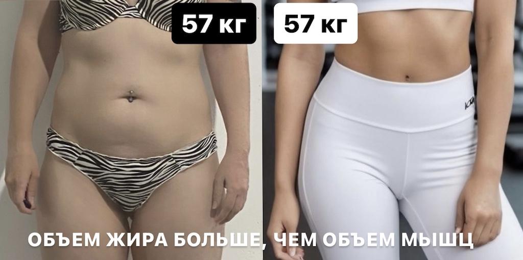 Вот так выглядит одинаковый вес, но с разным количеством жировой ткани: