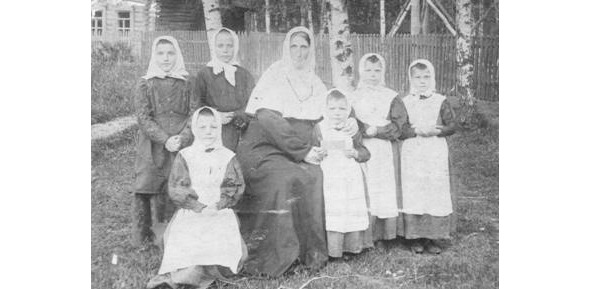 Сёстры Семёновы в церковном приюте. Рядом с матерью-игуменьей моя мать (самая младшая, Ната).