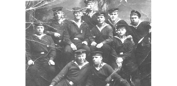 Алексей Берков (четвёртый слева, сидит) в период службы на флоте (1935 г.)