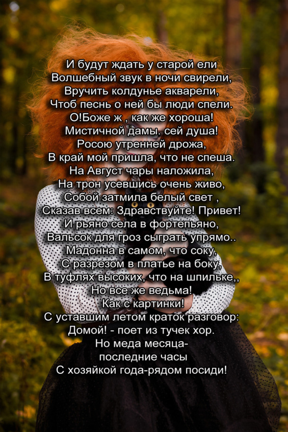 Поэтические страницы « Хроно» В сентябрьском выпуске» Хронометр» мы хотим познакомить вас с творчеством открытой группы «В Контакте», которая зародилась совсем недавно и объединила творческих людей различного направления. Поскольку наш первый выпуск приходится на первый осенний месяц, то мы и открываем его с откровенных посвящений этому прекрасному времени года. Елена Мельниченко, Марина Листок и Анастасия Кравцова, Светлана Вольхина- активные участники группы, а также создатель этой группы и составитель данного издания Сергей Ходосевич представляют вам свои осенние поэтические этюды, прославляющие» рыжую колдунью- Осень»